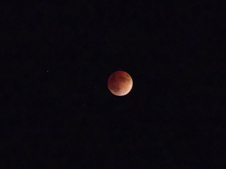 Зрелище стоило того, чтобы пожертвовать сном. В 21:50 земная тень начала медленно «съедать» спутник, а к полуночи — в 23:35 — Луна окрасилась в зловещий багровый цвет.